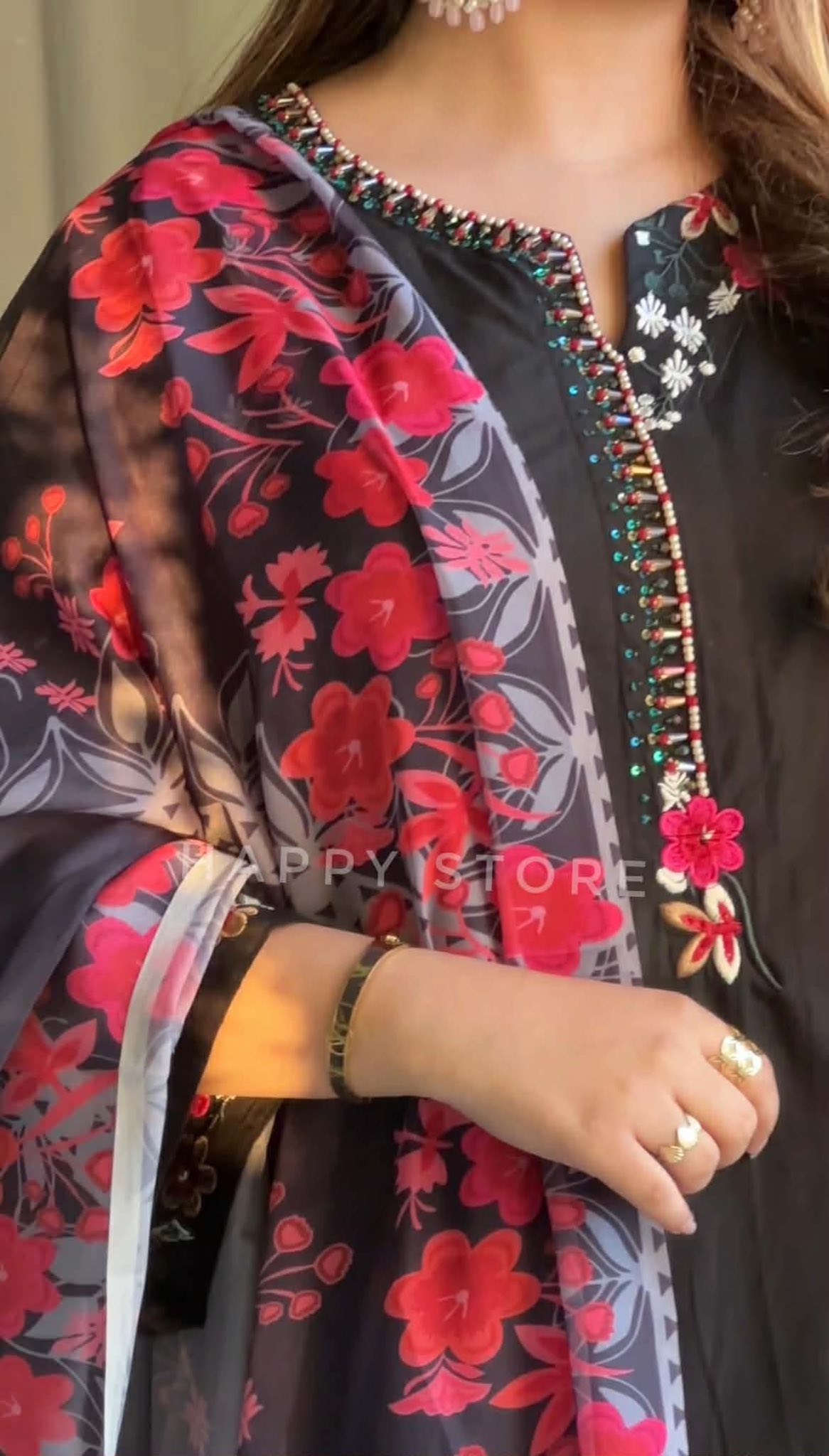 Experience the perfect blend of elegance and tradition with our Black Karchupi 3-piece collection. This exquisite ensemble is designed for those who appreciate fine craftsmanship, featuring intricate hand-done Karchupi work paired with premium floral embroidery. The deep black base provides a sophisticated canvas for the vibrant floral motifs, making it a standout choice for any occasion in Bangladesh.